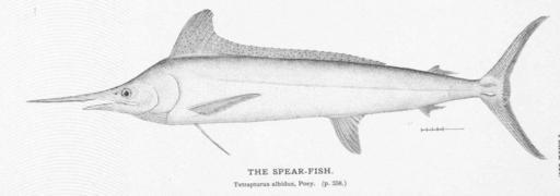 | Keywords: FMIB 50976 Spear-Fish.jpeg Spear-Fish Tetrapturus albidus Poey Subject Spearfishes Tag Fish 1884 Cite book Fisheries and Fishery Industries of the United States Section I Natural History of Useful Aquatic Animals Plates Goode George Brown Washington DC Government Printing Office 1884 Plate 116 Creator George Brown Goode PD-UWASH-FMIB Institution University of Washington FMIB-source accession number 50976 Images from the Freshwater and Marine Image Bank to check The Fisheries and Fishery Industries of the United States Kajikia albida |