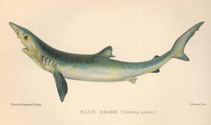 | Keywords: FMIB 51234 Blue Shark (Carcharias glaucus).jpeg Blue Shark Carcharias glaucus Subject Blue shark Tag Fish 1904 Cite book British Salt-Water Fishes Aflalo F G London England Hutchinson Co 1904 Facing page 94 Creator Reinhold Thiele PD-UWASH-FMIB Institution University of Washington FMIB-source accession number 51234 Images from the Freshwater and Marine Image Bank to check Reinhold Thiele Prionace glauca | ||||