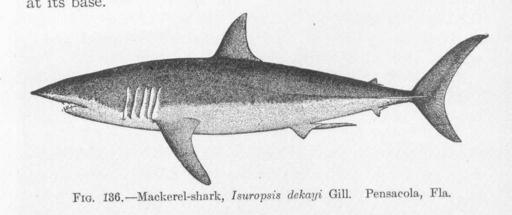 | Keywords: FMIB 51673 Mackerel-shark, Isuropsis deksyi Gill Pensacola, Fla.jpeg Mackerel-shark Isuropsis deksyi Gill Pensacola Fla Subject Mackderel sharks Tag Fish 1907 Cite book Fishes Jordan David Starr New York City NY Henry Holt and Company 1907 Fig 136 Creator David Starr Jordan PD-UWASH-FMIB Institution University of Washington FMIB-source accession number 51673 Images from the Freshwater and Marine Image Bank to check David Starr Jordan Isurus oxyrinchus | ||||