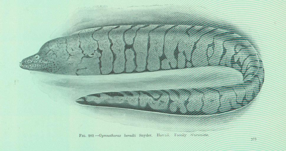 | Keywords: FMIB 51819 Gymnothorax berndti Snyder Hawaii Family Muraenidae.jpeg Gymnothorax berndti Snyder Hawaii Family Muraenidae Subject Morays Tag Fish 1907 Cite book Fishes Jordan David Starr New York City NY Henry Holt and Company 1907 Fig 282 Creator David Starr Jordan PD-UWASH-FMIB Institution University of Washington FMIB-source accession number 51819 Images from the Freshwater and Marine Image Bank to check David Starr Jordan Gymnothorax berndti | ||||