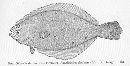 | Keywords: FMIB 52175 Wide mouthed Flounder, Paralichthys dentatus (L) St George I, Md.jpeg Wide mouthed Flounder Paralichthys dentatus L St George I Md Subject Flatfishes Tag Fish 1907 Cite book Fishes Jordan David Starr New York City NY Henry Holt and Company 1907 Fig 606 Creator David Starr Jordan PD-UWASH-FMIB Institution University of Washington FMIB-source accession number 52175 Images from the Freshwater and Marine Image Bank to check David Starr Jordan Paralichthys dentatus | ||||