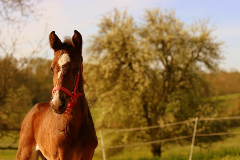 Keywords: foal chestnut horse equestrian equine nature young field spring