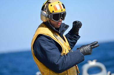 | Keywords: Foal Eagle 2015 150312-N-UG232-007.jpg en 150312-N-UG232-007 WATERS TO THE EAST OF THE KOREAN PENINSULA March 12 2015 Boatswain ™s Mate 2nd Class Renmel Leones signals to the pilot of a MH-60 Seahawk helicopter from Helicopter Maritime Strike Squadron HSM 51 on the flight deck of USS Lassen DDG 82 during exercise Foal Eagle 2015 Foal Eagle is a series of annual training events that are defense-oriented and designed to increase readiness and maintain stability on the Korean Peninsula while strengthening the ROK-U S alliance and promoting regional peace and stability of the Indo-Asian-Pacific region U S Navy Photo by Mass Communication Specialist 1st Class Martin Wright/Released 2015-03-12 Petty Officer 1st Class Martin Wright https //www dvidshub net/image/1821828 150312-N-UG232-007 2015-03-19 00 03 USS LASSEN WATERS TO THE EAST OF THE KOREAN PENINSULA AT SEA PD-USGov-Military-Navy MH-60R Seahawk USS Lassen DDG-82 Images from DoD uploaded by Fæ Foal Eagle 2015 |