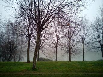 Keywords: fog mist moisture nature trees winter cold landscape arboleda lawn grass park