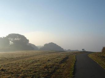 Keywords: fog mist mysterious ghostly empty bench lonely landscape park