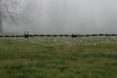 Keywords: fog mist wet rain dew drop water barbed wire nature