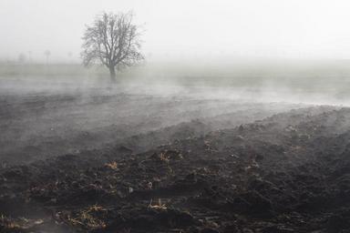 Keywords: fog mood landscape fog bank fog day november arable plowed steam tree