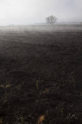 Keywords: fog mood landscape fog bank fog day november arable plowed steam tree