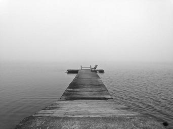 Keywords: fog peer water lake foggy calm perspective tranquil haze horizon mist