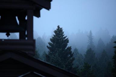 Keywords: fog tree evergreen forest haze bell