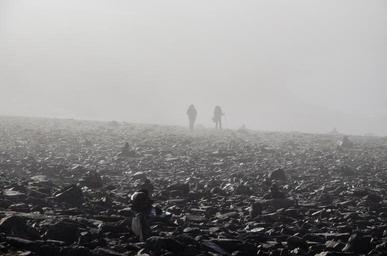 Keywords: foggy hikers landscape hiking mountain people outdoor adventure climbing
