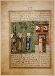 | Keywords: Folio Khavarannama Met 55.184.1.jpg Three men before a castle An imaginary meeting between the poet Ferdowsi and Ibn Husam Folio from a Khavarannama The Book of the East of ibn Husam al-Din Rencontre imaginaire du poète Ferdowsî et d'Ibn Husam Feuille du Khavarannama Le Livre de l'Est d'ibn Husam al-Din - 1476 1488 watercolor opaque ink gold paper cm 39 8 28 9 Institution Metropolitan Museum of Art Department of Islamic Art gallery 455 140008639 object history Provenance Shiraz in Iran credit line ProvenanceEvent purchase Hassan Khan Monif Rogers Fund 1955 accession number 55 184 1 Marie-Lan Nguyen 2011 PD-old-100 other versions Ferdowsi 15th-century illuminated manuscripts Islamic manuscripts in the Metropolitan Museum of Art |