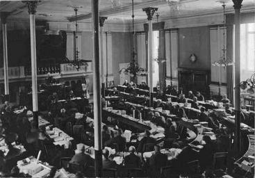 | Keywords: Folketingssalen i Rigsdagsbygningen.jpg en The temporary assembly hall used by Folketinget after the fire of Christiansborg Palace in 1884 until 1928 Royal Library Copenhagen Author between 1884 1928 PD-old-70-1923 Folketinget Collections of The Royal Library Denmark |
