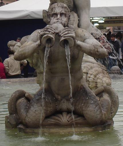 | Keywords: Fontana del Moro south Triton.jpg One of the tritons sculpted by Giacomo della Porta now located in the Fontana del Moro Piazza Navona viewed from the south photograph taken by User Wikibob created 1 Nov 2005 Wikibob released in the public domain by Wikibob Fontana del Moro Rome |