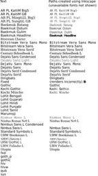 | Keywords: Fonts.svg Test which fonts are supported on Wikimedia sites List taken from m SVG fonts http //meta wikimedia org/w/index php title SVG_fonts oldid 577774 as of May 5 2007 Left Text as simple text Right Text converted to paths using Inkscape - not all fonts were available to me locally so I left those blank 2006-05-25 own assumed Dapete Font comparisons Files by User Dapete |