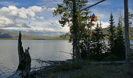 Keywords: yellowstone yellowstone national park yellowstonenationalpark camping backcountry outdoor Bear pole at campsite 6A3; Diane Renkin; July 2015; Catalog #20217d; Original #P1070501 Bear pole at campsite 6A3; Diane Renkin; July 2015; Catalog #20217d; Original #P1070501