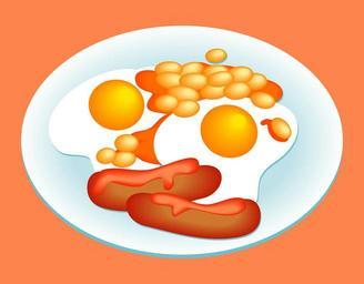 Keywords: food cooked breakfast fried eggs beans sausages ketchup meal meat traditional dish dinner plate plate of food food plate