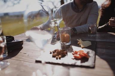 Keywords: food drinks glasses people lunch dinner sunny table restaurant