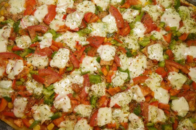 Keywords: food eat meal italian pizza tomatoes pepperoni corn tuna mozarella
