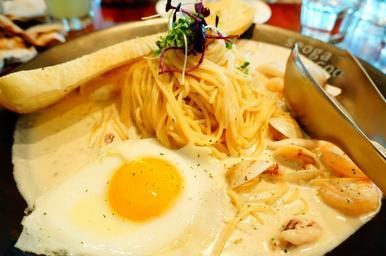 Keywords: food eggs spaghetti delicious