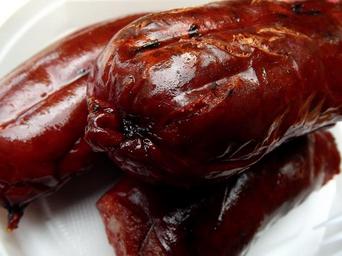 Keywords: food meat sausages fried juicy picnic bbq grill vacation summer dacha closeup