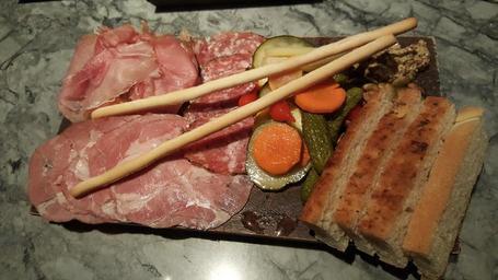 Keywords: food restaurant antipasti restaurant food dining cuisine cold cuts pickled vegetables bread tapas plate of food meat delicious vegetable ham capicola bread sticks
