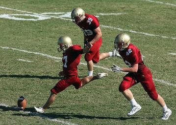 | Keywords: football american football football team sport ball game play football american pigskin team competition players kickoff kick initiate football field american football field football game college football team sport men action action photo trio green red yard line athletes concentration focus gridiron texas |