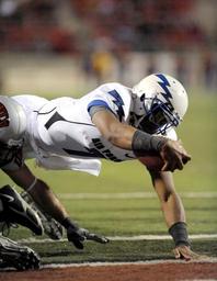 Keywords: football american goal reaching game runner ball running back ball carrier touchdown stadium sport team players competition action college stretch