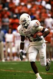 Keywords: football ball carrier running back player male competitive competition game american football helmet ball sport action play grass people athletic athlete college football university texas texan