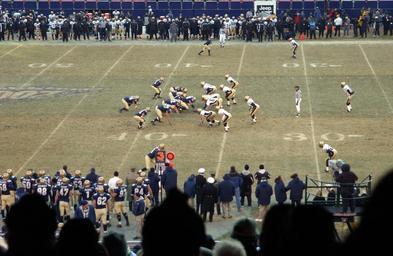 | Keywords: Football play from scrimmage.jpg 021207-N-2383B-682 East Rutherford N J Dec 7 2002 -- The U S Navy Midshipmen offensive line prepares to drive forward as they dominate the playing field against the Army's Black Knights With Quarterback Craig Candeto from Orange City Fla at the helm the Midshipmen set a record 421 rushing yards with a crushing 508 yards of total offense This historic rivalry in college football was set in Giants Stadium this year for the 103rd meeting between the two service academies that dates back to 1890 Navy beat Army by an unprecedented lop-sided score of 58-12 U S Navy photo by Chief Photographer's Mate Johnny Bivera RELEASED http //www navy mil/view_image asp id 3626 http //www navy mil/management/photodb/photos/021207-N-2383B-682 jpg direct image link 2002-12-07 U S Navy photo by Chief Photographer's Mate Johnny Bivera PD PD-USGov-Military-Navy 2002 Army-Navy Game |