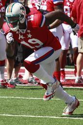 Keywords: football player american practice receiver ball grass field drill man athlete professional helmet uniform