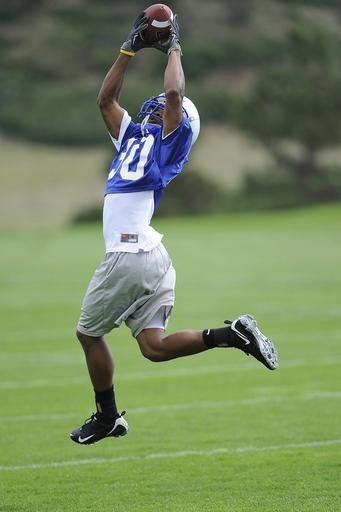 Keywords: football player receiver pass catch ball field athlete practice goal competition play action male american outdoors grass
