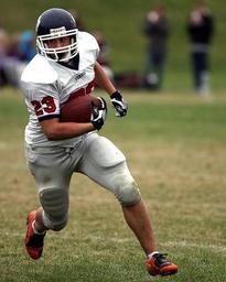 Keywords: football running back ball carrier ball sport action competition player running athlete competitive uniform field grass playing outdoors athletic football player play canadian canada helmet game