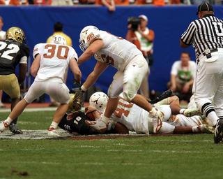 Keywords: football tackling teamwork american game action competition play yard helmet player college green uniform grass male referee umpire sports official tackle athlete match sport ball