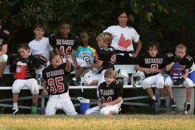 Keywords: football team youth league substitutes team bench team mom players helmets watching game play youth match sport american competition athletes boys kids activity equipment competitive diversity expressions smiling laughing sports equipment people healthy outdoor activities active