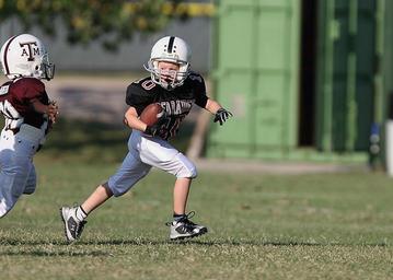 Keywords: football youth league action american player running back ball carrier ball competition game sport young youth active child grass green outdoors kid athlete