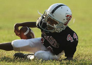 Keywords: football youth league fallen player ball game sport grass field kid play youth young sports outdoors child boy helmet uniform active autumn face mask ground competition texan