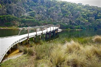Keywords: footbridge tidal river wilsons promontory boardwalk pedestrian grass