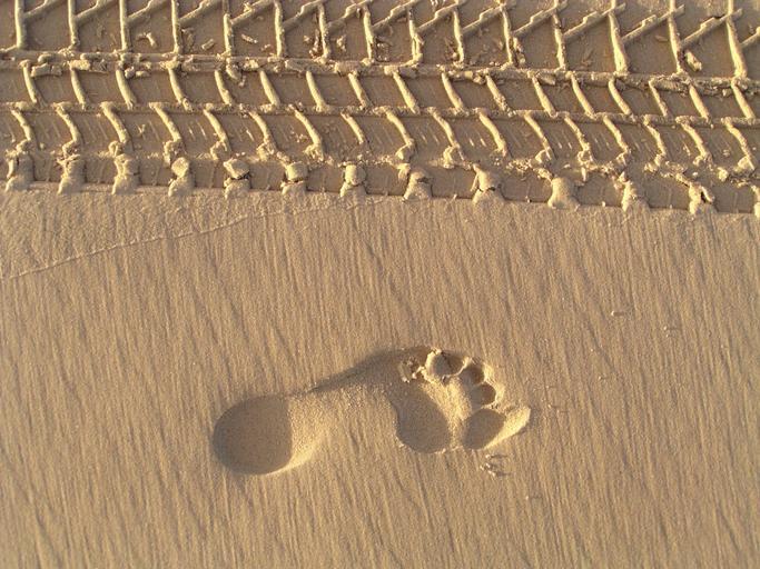 Keywords: footprint footprints sand beach barefeet barefoot foot footstep human vehicle traction pristine