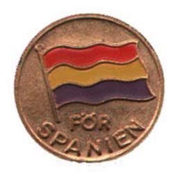 Keywords: For Spanien.jpg en Swedish Solidarity Pin Button For Spain 1930's own Bulver 2011-03-21 Cc-zero Flags on lapel pins Photographs of flags of the Spanish Second Republic Pin buttons Flags of Spain in art