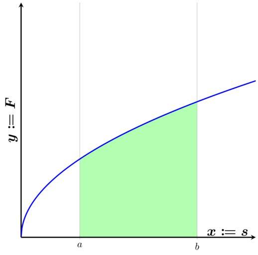 | Keywords: Force-distance-diagram.svg en Force-distance diagramm The marked area is work Force is variable de Kraft-Weg Diagramm bei veränderbarer Kraft Die markierte Fläche ist die verrichtete Arbeit own MartinThoma 2014-08-12 cs 0 0 5 anchor south rotate 90 font \boldmath\Large \addplotdomain 0 4 blue very thick samples 500 name path f sqrt x ; \pathname path axis axis cs 0 0 -- axis cs 10 0 ; \addplotfill green fill opacity 0 3 fill betweenof f and axis soft clip domain 1 3 ; \end axis \end tikzpicture \end document </source> Mechanical work Displacement Images by Martin Thoma/Physics TikZ diagrams Cc-zero force-distance diagrams |