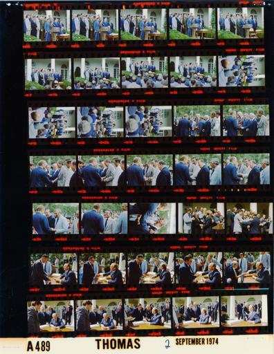 | Keywords: Ford A0489 NLGRF photo contact sheet (1974-09-02)(Gerald Ford Library).jpg White House Photographic Office WHPO is housed at the Gerald R Ford Presidential Library a branch of the National Archives and Records Administration NARA <br/><br/> This file is a 200 dpi photo contact sheet having images from roll of film A0489 of the August 9 1974 - January 20 1977 Gerald R Ford White House Photographic Office Series A0001-A9999 and B0001-B2886 photographs <br/><br/> The date on the photo contact sheet is the date the roll of film was processed not necessarily the date the photographs were taken See table below for additional details 1974-09-02 Gerald R Ford Presidential Library Image http //www fordlibrarymuseum gov/library/whphotos/A0489_NLGRF jpg A0489_NLGRF jpg from http //www fordlibrarymuseum gov/library/whphotos/19740902whpo pdf White House Photographs September 2 1974 of the http //www fordlibrarymuseum gov/Library/whphotos/whpo asp White House Photographic Collection page White House Photographic Office WHPO - Thomas PD-USGov Institution Institution Gerald R Ford Presidential Library Table wikitable sortable + Photo contact sheet A0489 U S President Ford Administration Gerald R Ford Library Frame s Tone Subject proper Subject generic Names Geographic Location Photographer Date - 2A-6A Color Signing Ceremony - Pension Reform Bill H R 2 seated signing document - side view horizontal Rose Garden Thomas 1974-09-02 - 7A-10A Color Signing Ceremony - Pension Reform Bill H R 2 standing speaking at podium -horizontal view Rose Garden Thomas 1974-09-02 - 11A-14A Color Signing Ceremony - Pension Reform Bill H R 2 standing speaking at podium -vertical front view Rose Garden Thomas 1974-09-02 - 15A Color Signing Ceremony - Pension Reform Bill H R 2 standing handshaking - receiving line Rose Garden Thomas 1974-09-02 - 16A Color Signing Ceremony - Pension Reform Bill H R 2 standing handshaking - receiving line Rose Garden Thomas 1974-09-02 - 17A-18A Color Signing Ceremony - Pension Reform Bill H R 2 standing handshaking - receiving line Rose Garden Thomas 1974-09-02 - 19A Color Signing Ceremony - Pension Reform Bill H R 2 standing handshaking - receiving line Rose Garden Thomas 1974-09-02 - 20A-21A Color Signing Ceremony - Pension Reform Bill H R 2 standing handshaking - receiving line Rose Garden Thomas 1974-09-02 - 22A Color Signing Ceremony - Pension Reform Bill H R 2 standing handshaking - receiving line Rose Garden Thomas 1974-09-02 - 23A Color Signing Ceremony - Pension Reform Bill H R 2 standing handshaking - receiving line Rose Garden Thomas 1974-09-02 - 24A Color Signing Ceremony - Pension Reform Bill H R 2 standing handshaking - receiving line Rose Garden Thomas 1974-09-02 - 25A-26A Color Signing Ceremony - Pension Reform Bill H R 2 standing behind podium handshaking Rose Garden Thomas 1974-09-02 - 27A Color Signing Ceremony - Pension Reform Bill H R 2 seated at table talking Rose Garden Thomas 1974-09-02 - 28A-29A Color Signing Ceremony - Pension Reform Bill H R 2 seated at table talking; handshaking Rose Garden Thomas 1974-09-02 - 30A Color Signing Ceremony - Pension Reform Bill H R 2 seated at table handshaking Rose Garden Thomas 1974-09-02 - 31A Color Signing Ceremony - Pension Reform Bill H R 2 seated at table handshaking Rose Garden Thomas 1974-09-02 - 32A-33A Color Signing Ceremony - Pension Reform Bill H R 2 seated at table writing on piece of paper Rose Garden Thomas 1974-09-02 - 34A-35A Color Signing Ceremony - Pension Reform Bill H R 2 seated at table handshaking Rose Garden Thomas 1974-09-02 - 36A Color Signing Ceremony - Pension Reform Bill H R 2 seated at table talking Rose Garden Thomas 1974-09-02 Gerald R Ford Presidential Library and Museum-cooperation PD-USGov Contact sheets by the Ford White House September 1974 |