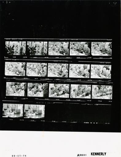 | Keywords: Ford A0601 NLGRF photo contact sheet (1974-09-07)(Gerald Ford Library).jpg White House Photographic Office WHPO is housed at the Gerald R Ford Presidential Library a branch of the National Archives and Records Administration NARA <br/><br/> This file is a 200 dpi photo contact sheet having images from roll of film A0601 of the August 9 1974 - January 20 1977 Gerald R Ford White House Photographic Office Series A0001-A9999 and B0001-B2886 photographs <br/><br/> The date on the photo contact sheet is the date the roll of film was processed not necessarily the date the photographs were taken See table below for additional details 1974-09-07 Gerald R Ford Presidential Library Image http //www fordlibrarymuseum gov/library/whphotos/A0601_NLGRF jpg A0601_NLGRF jpg from http //www fordlibrarymuseum gov/library/whphotos/19740907whpo pdf White House Photographs September 7 1974 of the http //www fordlibrarymuseum gov/Library/whphotos/whpo asp White House Photographic Collection page White House Photographic Office WHPO <br/> Creator David Hume Kennerly PD-USGov Institution Institution Gerald R Ford Presidential Library Table wikitable sortable + Photo contact sheet A0601 U S President Ford Administration Gerald R Ford Library Frame s Tone Subject proper Subject generic Names Geographic Location Photographer Date - 14-16 BW Alexandria VA Police Association Crab Pick Picnic - Fairfax Virginia sitting eating; taken from right of group GRF Cosmonaut Dobrynin Fairfax VA North Virginia Police Academy Kennerly 1974-09-07 - 17-18 BW sitting at desk reading GRF Oval Office Kennerly 1974-09-07 - 2-3 BW Crew of Joint Apollo-Soyuz Space Mission standing behind model of Apollo-Soyuz spacecraft GRF Anatoly Dobrynin Aleksey Leonov Valery Kubasov Vladamir Shatalov Thomas Stafford Donald Slayton Vance Brand George Low Anatole Forostenko Scowcroft Media Cabinet Room Kennerly 1974-09-07 - 4-8 BW Alexandria VA Police Assoc Crab Pick Picnic sitting eating; taken from left of group Dobrynin Cosmonaut GRF Stafford Others Fairfax VA North Virginia Police Academy Kennerly 1974-09-07 - 9-11 BW Alexandria VA Police Association Crab Pick Picnic - Fairfax Virginia sitting eating; taken from left of group Cosmonaut Dobrynin Cosmonaut GRF Stafford Others Fairfax VA North Virginia Police Academy Kennerly 1974-09-07 - 12 BW Alexandria VA Police Association Crab Pick Picnic - Fairfax Virginia sitting eating; taken from right of group Cosmonaut Stafford GRF Cosmonaut Dobrynin Fairfax VA North Virginia Police Academy Kennerly 1974-09-07 - 13 BW Alexandria VA Police Association Crab Pick Picnic - Fairfax Virginia sitting eating; taken from right of group Stafford GRF Cosmonaut Dobrynin Fairfax VA North Virginia Police Academy Kennerly 1974-09-07 Gerald R Ford Presidential Library and Museum-cooperation PD-USGov Contact sheets by the Ford White House September 1974 Photographs by David Hume Kennerly from 1974 |