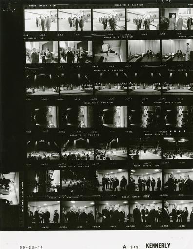 Keywords: Ford A0949 NLGRF photo contact sheet (1974-09-23)(Gerald Ford Library).jpg White House Photographic Office WHPO is housed at the Gerald R Ford Presidential Library a branch of the National Archives and Records Administration NARA <br/><br/> This file is a 200 dpi photo contact sheet having images from roll of film A0949 of the August 9 1974 - January 20 1977 Gerald R Ford White House Photographic Office Series A0001-A9999 and B0001-B2886 photographs <br/><br/> The date on the photo contact sheet is the date the roll of film was processed not necessarily the date the photographs were taken See table below for additional details 1974-09-23 Gerald R Ford Presidential Library Image http //www fordlibrarymuseum gov/library/whphotos/A0949_NLGRF jpg A0949_NLGRF jpg from http //www fordlibrarymuseum gov/library/whphotos/19740923whpo pdf White House Photographs September 23 1974 of the http //www fordlibrarymuseum gov/Library/whphotos/whpo asp White House Photographic Collection page White House Photographic Office WHPO <br/> Creator David Hume Kennerly PD-USGov Institution Institution Gerald R Ford Presidential Library Table wikitable sortable + Photo contact sheet A0949 U S President Ford Administration Gerald R Ford Library Frame s Tone Subject proper Subject generic Names Geographic Location Photographer Date - 2-5 BW Arrival in Detroit for Ninth World Energy Conference - Romulus Michigan greeting handshaking posing GRF Gov Mrs William G Milliken Walker Cisler Romulus MI Metropolitan Airport - American Airlines Hangar Kennerly 1974-09-23 - 6 BW Arrival in Downtown Detroit for Ninth World Energy Conference - Detroit Michigan greeting handshaking GRF Steve Bechtel Detroit MI Outside Cobo Hall Kennerly 1974-09-23 - 7-8 BW Arrival in Downtown Detroit for Ninth World Energy Conference - Detroit Michigan standing talking GRF Steve Bechtel Gov William G Milliken Walker Cisler Detroit MI Outside Cobo Hall Kennerly 1974-09-23 - 9 BW Prior to address before the Ninth World Energy Conference - Detroit Michigan getting coffee GRF Todd Detroit MI Cobo Hall - Holding Room Kennerly 1974-09-23 - 10 BW Prior to address before the Ninth World Energy Conference - Detroit Michigan seated smoking pipe GRF Detroit MI Cobo Hall - Holding Room Kennerly 1974-09-23 - 11 BW Prior to address before the Ninth World Energy Conference - Detroit Michigan seated smoking pipe; Todd standing talking to GRF GRF Todd Detroit MI Cobo Hall - Holding Room Kennerly 1974-09-23 - 12-28 BW Address before the Ninth World Energy Conference - Detroit Michigan GRF speaking at podium long shots various angles GRF Platform Guests Others Detroit MI Cobo Arena Kennerly 1974-09-23 - 29-37 BW Ninth World Energy Conference - Detroit Michigan greeting handshaking standing talking various angles and distances; all not in every frame GRF Steve Bechtel Platform Guests Others Detroit MI Cobo Arena - VIP Reception Area Kennerly 1974-09-23 Gerald R Ford Presidential Library and Museum-cooperation PD-USGov Contact sheets by the Ford White House September 1974 Photographs by David Hume Kennerly from 1974 |