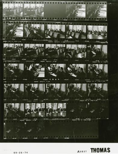 | Keywords: Ford A1037 NLGRF photo contact sheet (1974-09-26)(Gerald Ford Library).jpg White House Photographic Office WHPO is housed at the Gerald R Ford Presidential Library a branch of the National Archives and Records Administration NARA <br/><br/> This file is a 200 dpi photo contact sheet having images from roll of film A1037 of the August 9 1974 - January 20 1977 Gerald R Ford White House Photographic Office Series A0001-A9999 and B0001-B2886 photographs <br/><br/> The date on the photo contact sheet is the date the roll of film was processed not necessarily the date the photographs were taken See table below for additional details 1974-09-26 Gerald R Ford Presidential Library Image http //www fordlibrarymuseum gov/library/whphotos/A1037_NLGRF jpg A1037_NLGRF jpg from http //www fordlibrarymuseum gov/library/whphotos/19740926whpo pdf White House Photographs September 26 1974 of the http //www fordlibrarymuseum gov/Library/whphotos/whpo asp White House Photographic Collection page White House Photographic Office WHPO - Thomas PD-USGov Institution Institution Gerald R Ford Presidential Library Table wikitable sortable + Photo contact sheet A1037 U S President Ford Administration Gerald R Ford Library Frame s Tone Subject proper Subject generic Names Geographic Location Photographer Date - 4-5 BW Senior Economic Advisers seated in chairs near window talking Rush Paul McCracken Stephen Gardner Lynn Arthur Burns Ash Greenspan Cabinet Room Thomas 1974-09-26 - 6 BW Thomas 1974-09-26 - 7-22 BW Senior Economic Advisers seated in chairs near window talking; various angles and distances Rush Paul McCracken Stephen Gardner Lynn Arthur Burns Ash Greenspan Cabinet Room Thomas 1974-09-26 - 23-29 BW Senior Economic Advisers Seidman standing others seated in chairs near window talking Rush Paul McCracken Stephen Gardner Lynn Arthur Burns Ash Greenspan Seidman Cabinet Room Thomas 1974-09-26 - 30-31 BW Meeting with Senior Economic Advisers seated at table talking Greenspan Seidman GRF Rush Cabinet Room Thomas 1974-09-26 - 32-35 BW Meeting with Senior Economic Advisers seated at table talking GRF Rush Paul McCracken Stephen Gardner Lynn Arthur Burns Ash Greenspan Seidman Cabinet Room Thomas 1974-09-26 Gerald R Ford Presidential Library and Museum-cooperation PD-USGov Contact sheets by the Ford White House September 1974 |