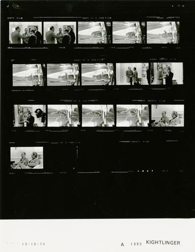 Keywords: Ford A1355 NLGRF photo contact sheet (1974-10-10)(Gerald Ford Library).jpg White House Photographic Office WHPO is housed at the Gerald R Ford Presidential Library a branch of the National Archives and Records Administration NARA <br/><br/> This file is a 200 dpi photo contact sheet having images from roll of film A1355 of the August 9 1974 - January 20 1977 Gerald R Ford White House Photographic Office Series A0001-A9999 and B0001-B2886 photographs <br/><br/> The date on the photo contact sheet is the date the roll of film was processed not necessarily the date the photographs were taken See table below for additional details 1974-10-10 Gerald R Ford Presidential Library Image http //www fordlibrarymuseum gov/library/whphotos/A1355_NLGRF jpg A1355_NLGRF jpg from http //www fordlibrarymuseum gov/library/whphotos/19741010whpo pdf White House Photographs October 10 1974 of the http //www fordlibrarymuseum gov/Library/whphotos/whpo asp White House Photographic Collection page White House Photographic Office WHPO - Kightlinger PD-USGov Institution Institution Gerald R Ford Presidential Library Table wikitable sortable + Photo contact sheet A1355 U S President Ford Administration Gerald R Ford Library Frame s Tone Subject proper Subject generic Names Geographic Location Photographer Date - 2A-3A BW United States Representative from Tennessee TN - Re Presentation of Commemorative copy of the Holy Bible standing in center of room talking GRF Rep LaMar Baker Michael Anglin Philip Morrison Garth Black Friedersdorf Korologos Oval Office Kightlinger 1974-10-10 - 4A-5A BW leaning over desk reading document GRF Oval Office Kightlinger 1974-10-10 - 6A-9A BW standing near desk reading document GRF Oval Office Kightlinger 1974-10-10 - 10A BW United States Representative from Florida FL - Re Why I Love America program greeting handshaking GRF Rep Chappell Oval Office Kightlinger 1974-10-10 - 11A-12A BW United States Representative from New Jersey NJ - Re Presentation of hand carved pipe to GRF standing presenting pipe - Hunt wearing Moslem fez GRF Rep Hunt Oval Office Kightlinger 1974-10-10 - 13A-15A BW seated at desk smoking pipe - left side profile GRF Oval Office Kightlinger 1974-10-10 - 16A-17A BW United States Representative from Illinois IL seated near fireplace GRF Rep Erlenborn Oval Office Kightlinger 1974-10-10 Gerald R Ford Presidential Library and Museum-cooperation PD-USGov Contact sheets by the Ford White House October 1974 |