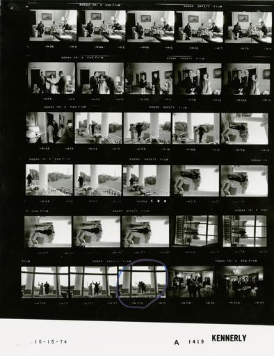 | Keywords: Ford A1419 NLGRF photo contact sheet (1974-10-15)(Gerald Ford Library).jpg White House Photographic Office WHPO is housed at the Gerald R Ford Presidential Library a branch of the National Archives and Records Administration NARA <br/><br/> This file is a 200 dpi photo contact sheet having images from roll of film A1419 of the August 9 1974 - January 20 1977 Gerald R Ford White House Photographic Office Series A0001-A9999 and B0001-B2886 photographs <br/><br/> The date on the photo contact sheet is the date the roll of film was processed not necessarily the date the photographs were taken See table below for additional details 1974-10-15 Gerald R Ford Presidential Library Image http //www fordlibrarymuseum gov/library/whphotos/A1419_NLGRF jpg A1419_NLGRF jpg from http //www fordlibrarymuseum gov/library/whphotos/19741015whpo pdf White House Photographs October 15 1974 of the http //www fordlibrarymuseum gov/Library/whphotos/whpo asp White House Photographic Collection page White House Photographic Office WHPO <br/> Creator David Hume Kennerly PD-USGov Institution Institution Gerald R Ford Presidential Library Table wikitable sortable + Photo contact sheet A1419 U S President Ford Administration Gerald R Ford Library Frame s Tone Subject proper Subject generic Names Geographic Location Photographer Date - 3A-7A BW 26th Wedding Anniversary; Singer and Entertainer seated talking GRF Betty Ford Tennessee Ernie Ford Second Floor - West Sitting Room Kennerly 1974-10-15 - 8A-10A BW 26th Wedding Anniversary; Singer and Entertainer standing talking GRF Betty Ford Tennessee Ernie Ford Second Floor - West Sitting Room Kennerly 1974-10-15 - 11A-12A BW 26th Wedding Anniversary; Singer and Entertainer standing posing GRF Betty Ford Tennessee Ernie Ford Second Floor - West Sitting Room Kennerly 1974-10-15 - 13A BW 26th Wedding Anniversary walking into Yellow Oval Room GRF Betty Ford Second Floor - Center Hall Kennerly 1974-10-15 - 14A-25A BW 26th Wedding Anniversary standing waving embracing talking - looking down towards people on South Lawn - taken from behind GRF Betty Ford Truman Balcony Kennerly 1974-10-15 - 26A-29A BW 26th Wedding Anniversary standing waving embracing talking - taken through Yellow Oval Room doors GRF Betty Ford Truman Balcony Kennerly 1974-10-15 - 30A BW 26th Wedding Anniversary embracing kissing - taken through Yellow Oval Room doors GRF Betty Ford Truman Balcony Kennerly 1974-10-15 - 31A-32A BW walking talking looking at framed gift from Tennessee Ernie Ford GRF Nessen Ground Floor -Diplomatic Reception Room Kennerly 1974-10-15 Gerald R Ford Presidential Library and Museum-cooperation PD-USGov Contact sheets by the Ford White House October 1974 Photographs by David Hume Kennerly from 1974 |
