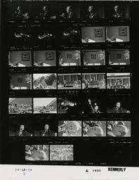 | Keywords: Ford A1450 NLGRF photo contact sheet (1974-10-16)(Gerald Ford Library).jpg White House Photographic Office WHPO is housed at the Gerald R Ford Presidential Library a branch of the National Archives and Records Administration NARA <br/><br/> This file is a 200 dpi photo contact sheet having images from roll of film A1450 of the August 9 1974 - January 20 1977 Gerald R Ford White House Photographic Office Series A0001-A9999 and B0001-B2886 photographs <br/><br/> The date on the photo contact sheet is the date the roll of film was processed not necessarily the date the photographs were taken See table below for additional details 1974-10-16 Gerald R Ford Presidential Library Image http //www fordlibrarymuseum gov/library/whphotos/A1450_NLGRF jpg A1450_NLGRF jpg from http //www fordlibrarymuseum gov/library/whphotos/19741016whpo pdf White House Photographs October 16 1974 of the http //www fordlibrarymuseum gov/Library/whphotos/whpo asp White House Photographic Collection page White House Photographic Office WHPO <br/> Creator David Hume Kennerly PD-USGov Institution Institution Gerald R Ford Presidential Library Table wikitable sortable + Photo contact sheet A1450 U S President Ford Administration Gerald R Ford Library Frame s Tone Subject proper Subject generic Names Geographic Location Photographer Date - 4-5 BW Missouri Republican Fundraising Breakfast - Kansas City Missouri GRF speaking at podium others seated in background GRF Gov Bond Others Kansas City MO Radisson Muehlebach Hotel - Grand Ballroom Kennerly 1974-10-16 - 6-11 BW Missouri Republican Fundraising Breakfast - Kansas City Missouri GRF speaking at podium close-up GRF Kansas City MO Radisson Muehlebach Hotel - Grand Ballroom Kennerly 1974-10-16 - 12-19 BW Trip to Kansas City Missouri seated reading GRF Kansas City MO Radisson Muehlebach Hotel - President's Suite Kennerly 1974-10-16 - 20 BW Trip to Sioux Falls South Dakota standing -Agent obscuring GRF GRF Secret Service Sioux Falls SD Joe Foss Field - Tarmac Kennerly 1974-10-16 - 21-25 BW Trip to Sioux Falls South Dakota GRF in limousine waving; crowd in background limousine moving toward and away from camera GRF Secret Service Crowd Sioux Falls SD South Dakota AAA Headquarters - Outside Kennerly 1974-10-16 - 26-30 BW South Dakota Republican State Central Committee Reception - Sioux Falls South Dakota speaking at podium - waving in second frame GRF Sioux Falls SD Sioux Falls Arena Kennerly 1974-10-16 - 31-34 BW Trip to Sioux Falls South Dakota speaking into microphone - close-up GRF Sioux Falls SD Joe Foss Field - Tarmac Kennerly 1974-10-16 - 35 BW Trip to Sioux Falls South Dakota GRF speaking into microphone; crowd in background GRF Crowd Sioux Falls SD Joe Foss Field - Tarmac Kennerly 1974-10-16 Gerald R Ford Presidential Library and Museum-cooperation PD-USGov Contact sheets by the Ford White House October 1974 Photographs by David Hume Kennerly from 1974 |