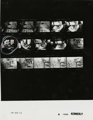 Keywords: Ford A1529 NLGRF photo contact sheet (1974-10-20)(Gerald Ford Library).jpg White House Photographic Office WHPO is housed at the Gerald R Ford Presidential Library a branch of the National Archives and Records Administration NARA <br/><br/> This file is a 200 dpi photo contact sheet having images from roll of film A1529 of the August 9 1974 - January 20 1977 Gerald R Ford White House Photographic Office Series A0001-A9999 and B0001-B2886 photographs <br/><br/> The date on the photo contact sheet is the date the roll of film was processed not necessarily the date the photographs were taken See table below for additional details 1974-10-20 Gerald R Ford Presidential Library Image http //www fordlibrarymuseum gov/library/whphotos/A1529_NLGRF jpg A1529_NLGRF jpg from http //www fordlibrarymuseum gov/library/whphotos/19741020whpo pdf White House Photographs October 20 1974 of the http //www fordlibrarymuseum gov/Library/whphotos/whpo asp White House Photographic Collection page White House Photographic Office WHPO <br/> Creator David Hume Kennerly PD-USGov Institution Institution Gerald R Ford Presidential Library Table wikitable sortable + Photo contact sheet A1529 U S President Ford Administration Gerald R Ford Library Frame s Tone Subject proper Subject generic Names Geographic Location Photographer Date - 3-5 BW Pet Golden Retriever standing talking GRF Avis Friberg Liberty East Colonnade Kennerly 1974-10-20 - 6-11 BW Motorcade to Congressional Country Club seated reading holding pen - wearing golf cap smoking pipe GRF Washington DC Limousine Kennerly 1974-10-20 - 12-14 BW Sunday Golf Outing with Lee Elder and Rep Arends; Professional Golfer; United States Representative from Illinois IL - Bethesda Maryland seated on bench tying golf shoes GRF Bethesda MD Congressional Country Club Kennerly 1974-10-20 - 15-17 BW Sunday Golf Outing with Lee Elder and Rep Arends; Professional Golfer; United States Representative from Illinois IL - Bethesda Maryland seated on bench tying golf shoes -buckets of golf balls in foreground GRF Bethesda MD Congressional Country Club Kennerly 1974-10-20 - 18 BW Sunday Golf Outing with Lee Elder and Rep Arends; Professional Golfer; United States Representative from Illinois IL - Bethesda Maryland walking away from bench - buckets of golf balls in foreground GRF Bethesda MD Congressional Country Club Kennerly 1974-10-20 Gerald R Ford Presidential Library and Museum-cooperation PD-USGov Contact sheets by the Ford White House October 1974 Photographs by David Hume Kennerly from 1974 |
