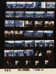 | Keywords: Ford A1578 NLGRF photo contact sheet (1974-10-21)(Gerald Ford Library).jpg White House Photographic Office WHPO is housed at the Gerald R Ford Presidential Library a branch of the National Archives and Records Administration NARA <br/><br/> This file is a 200 dpi photo contact sheet having images from roll of film A1578 of the August 9 1974 - January 20 1977 Gerald R Ford White House Photographic Office Series A0001-A9999 and B0001-B2886 photographs <br/><br/> The date on the photo contact sheet is the date the roll of film was processed not necessarily the date the photographs were taken See table below for additional details 1974-10-21 Gerald R Ford Presidential Library Image http //www fordlibrarymuseum gov/library/whphotos/A1578_NLGRF jpg A1578_NLGRF jpg from http //www fordlibrarymuseum gov/library/whphotos/19741021whpo pdf White House Photographs October 21 1974 of the http //www fordlibrarymuseum gov/Library/whphotos/whpo asp White House Photographic Collection page White House Photographic Office WHPO - Fitz-Patrick PD-USGov Institution Institution Gerald R Ford Presidential Library Table wikitable sortable + Photo contact sheet A1578 U S President Ford Administration Gerald R Ford Library Frame s Tone Subject proper Subject generic Names Geographic Location Photographer Date - 3-6 Color Trip to Mexico walking arm in arm smiling - Kissinger wearing sunglasses Kissinger Crowd Magdalena Mexico Magdalena Street Fitz-Patrick 1974-10-21 - 7-9 Color Trip to Mexico - President of Mexico; Mayor of Magdalena standing on platform GRF reaching out; crowd below platform GRF Luis Echeverria Alicia Arelland Tapia de Pavlovitch Sra Morayta Interpreter Secret Service Crowd Magdalena Mexico Prior to Departure From Campaign Trip to Oklahoma Fitz-Patrick 1974-10-21 - 10-11 Color Trip to Mexico long shot La Cripta Del Padre Kino in background GRF Luis Echeverria Alicia Arelland Tapia de Pavlovitch Sra Morayta Interpreter Secret Service Crowd Magdalena Mexico La Plaza Del Padre Kino Fitz-Patrick 1974-10-21 - 12 Color Trip to Mexico - President of Mexico; Mayor of Magdalena walking GRF Luis Echeverria Alicia Arelland Tapia de Pavlovitch Sra Morayta Interpreter Secret Service Crowd Magdalena Mexico La Plaza Del Padre Kino Fitz-Patrick 1974-10-21 - 13-14 Color Trip to Mexico - President of Mexico; Mayor of Magdalena standing on second floor balcony of City Hall; crowd standing in Plaza - long shot GRF Luis Echeverria Alicia Arelland Tapia de Pavlovitch Sra Morayta Interpreter Secret Service Crowd Magdalena Mexico La Plaza Del Padre Kino Fitz-Patrick 1974-10-21 - 15-16 Color Trip to Mexico - President of Mexico GRF and Echeverria seated on couch; interpreter standing GRF Luis Echeverria Sra Morayta Interpreter Magdalena Mexico Magdalena City Hall Fitz-Patrick 1974-10-21 - 17-19 Color Trip to Mexico - President and Foreign Minister of Mexico seated on couch posing GRF Luis Echeverria Kissinger Emilio O Rabasa Magdalena Mexico Magdalena City Hall Fitz-Patrick 1974-10-21 - 20-21 Color Trip to Arizona -Tupac Arizona children standing behind rope Crowd Tupac AZ Tubac Country Club Fitz-Patrick 1974-10-21 - 22-23 Color Trip to Arizona; President and Foreign Minister of Mexico - Tupac Arizona walking from helicopters - all not on each frame GRF Luis Echeverria Kissinger Emilio O Rabasa Others Tupac AZ Tubac Country Club Fitz-Patrick 1974-10-21 - 24 Color Trip to Arizona - Tupac Arizona greeting handshaking GRF Luis Echeverria Crowd Tupac AZ Tubac Country Club Fitz-Patrick 1974-10-21 - 25-30 Color Trip to Arizona -Tupac Arizona greeting handshaking Kissinger Crowd Tupac AZ Tubac Country Club Fitz-Patrick 1974-10-21 - 31 Color Trip to Arizona; President of Mexico - Tucson Arizona standing in rain backs to camera - night shot GRF Luis Echeverria Tucson AZ Davis-Monthan Air Force Base Fitz-Patrick 1974-10-21 - 32 Color Trip to Arizona -Tucson Arizona silhouetted in light GRF Tucson AZ Davis-Monthan Air Force Base Fitz-Patrick 1974-10-21 - 33 Color Trip to Arizona; President of Mexico - Tucson Arizona GRF speaking Echeverria standing in background - night shot GRF Luis Echeverria Tucson AZ Davis-Monthan Air Force Base Fitz-Patrick 1974-10-21 - 34-37 Color Trip to Arizona - Tucson Arizona silhouetted in light GRF Tucson AZ Davis-Monthan Air Force Base Fitz-Patrick 1974-10-21 Gerald R Ford Presidential Library and Museum-cooperation PD-USGov Contact sheets by the Ford White House October 1974 |
